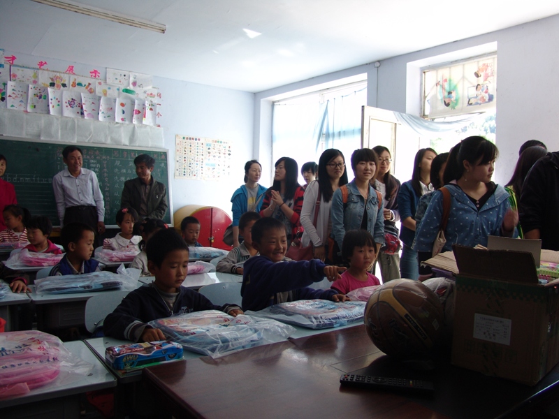 邓栅子小学目前只有学前班和小学一年级的学生,由于当地教育局对学校的改革整合,二年级以上的学生都分流了,除了校长以外只有三名老师。孩子们在接到老师和大姐姐、大哥哥们递给的文具和衣物时,露出了甜美的笑容。我们这次还带去了一些体育用品,如跳绳、篮球等,老师和同学们和孩子们一起跳绳、打篮球,孩子们兴奋极了。大哥哥、大姐姐们告诉孩子们不要怕眼前的艰苦环境,一定要树立远大理想,鼓励他们在学习和生活中迎难而上的勇气和信心。此次邓栅子小学之行的活动目的更加鲜明,意义更加深刻,对党员教师和学生也是一次实践教育。