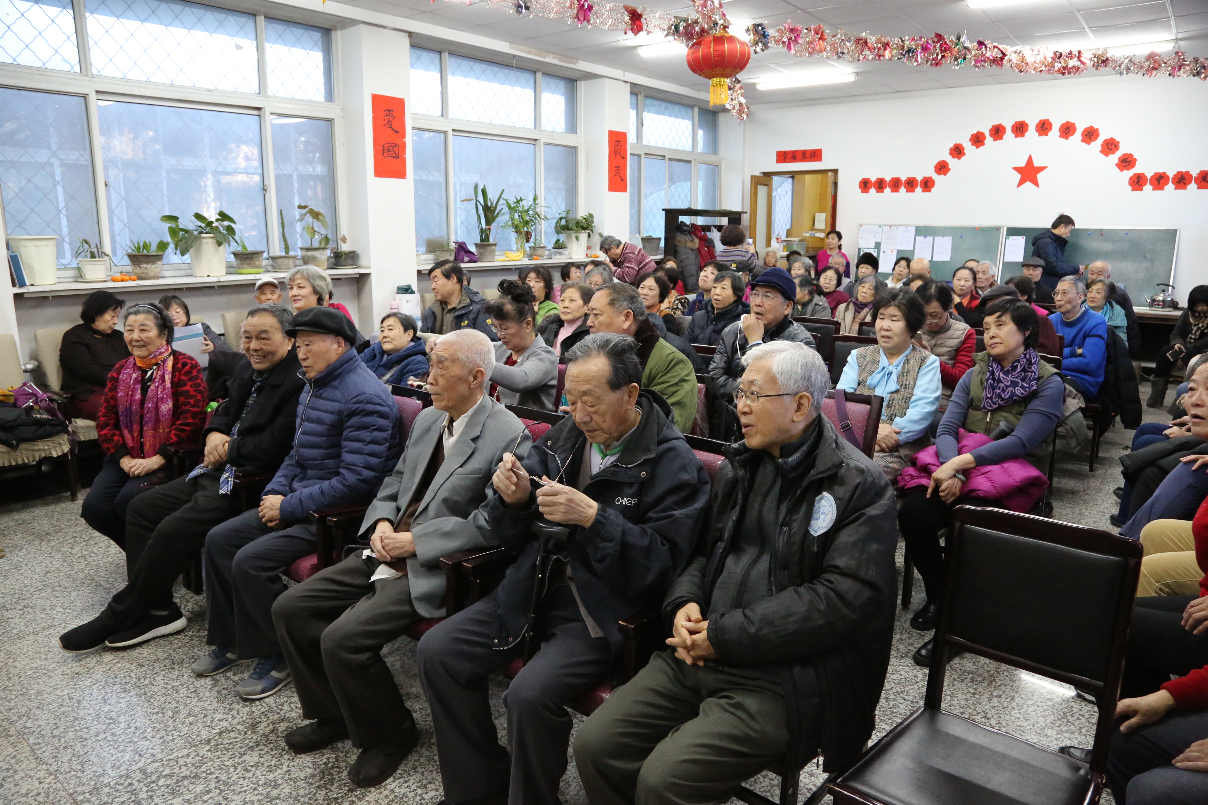 2016年12月23日和2017年12月20日,退休十四支部联合十三支部、十五支部,连续两年召开迎新联欢会,节目内容除自编自演的文艺节目以外,还穿插了有奖知识问答和猜灯谜活动。有奖知识问答由三个支部一起选用了庆祝长征、建党95周年以及学习党的十九大精神相关资料为主要内容,各编印了二十道问答题,引起大家的关注和兴趣。事前他们把试题和答案张贴在活动室的墙上,供大家复习准备。试题有:长征与二万五千里长征是同一个概念吗?“两学一做”学什么做什么?入党誓词的第一句和最后一句是什么?等等。联欢会场大家一起布置,并请80岁以上的老同志坐在前排负责颁奖。现场气氛热烈,大家在欢声笑语中增长了知识,在辞旧迎新的歌声中,共祝祖国繁荣昌盛。这也是十几年来,几届党支部延续下来的一个保留节目。