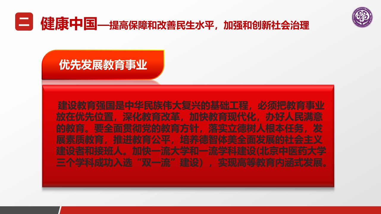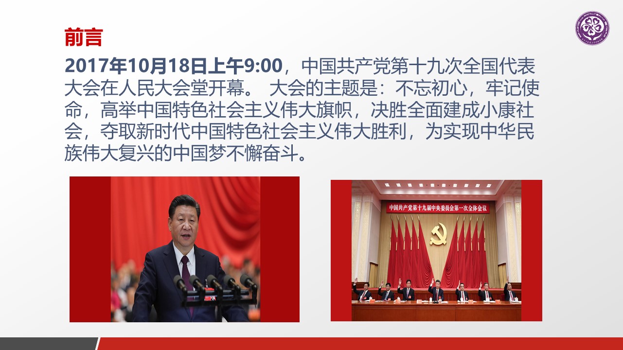 党的十九大胜利闭幕后,2026世界杯官方合作网站各级党组织掀起了学习宣传贯彻党的十九大精神的热潮。学校党委组织部、党委宣传部和共青团组织共同举办了“认真学习宣传贯彻党的十九大精神,写好北中医奋进之笔——优秀党课课件评选与展播”活动。在此,我们遴选了一些内容比较丰富、设计比较精美的课件在此展出。