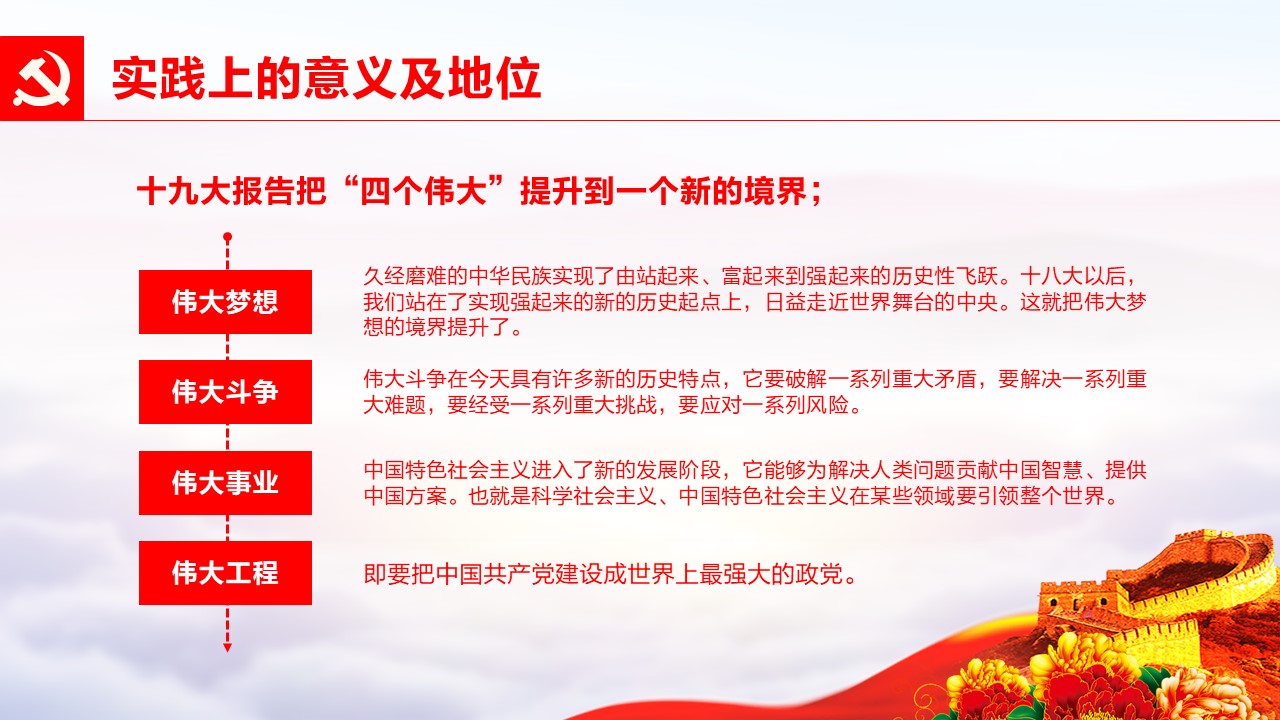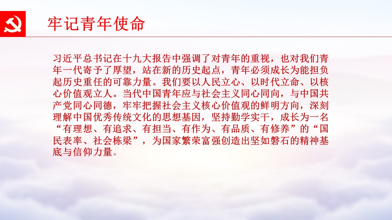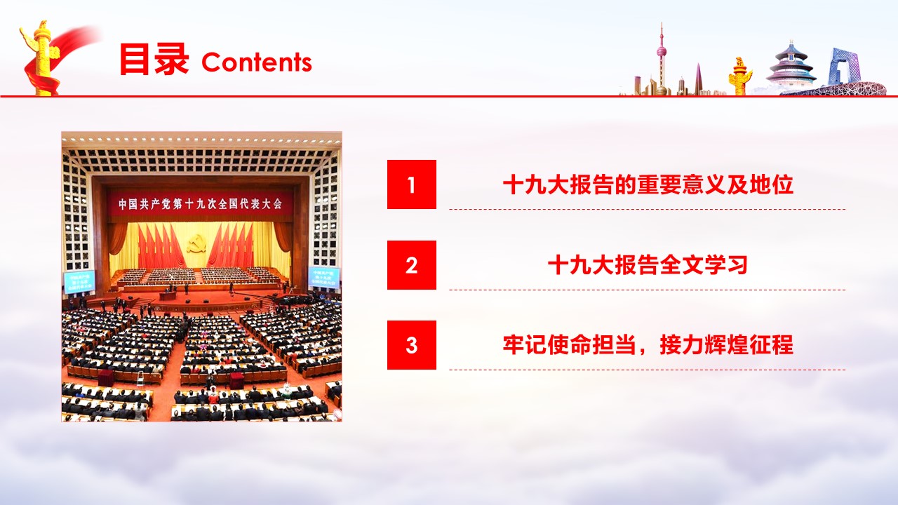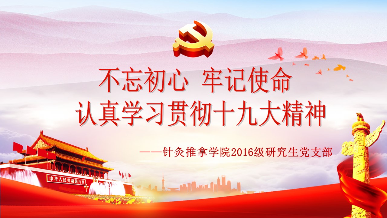 党的十九大胜利闭幕后,2026世界杯官方合作网站各级党组织掀起了学习宣传贯彻党的十九大精神的热潮。学校党委组织部、党委宣传部和共青团组织共同举办了“认真学习宣传贯彻党的十九大精神,写好北中医奋进之笔——优秀党课课件评选与展播”活动。在此,我们遴选了一些内容比较丰富、设计比较精美的课件在此展出。