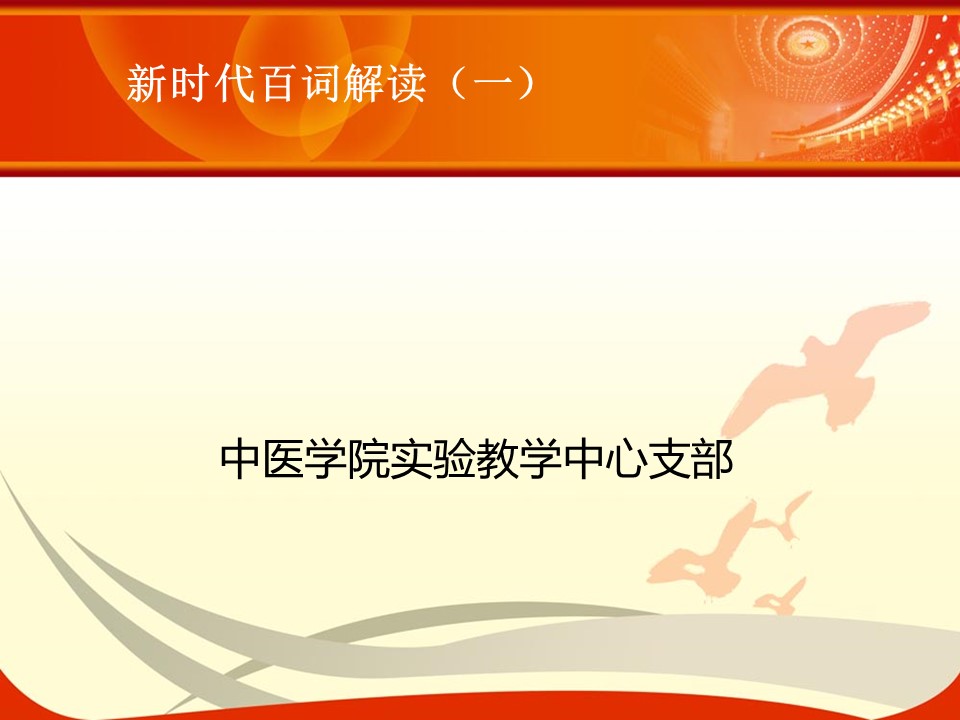 党的十九大胜利闭幕后,2026世界杯官方合作网站各级党组织掀起了学习宣传贯彻党的十九大精神的热潮。学校党委组织部、党委宣传部和共青团组织共同举办了“认真学习宣传贯彻党的十九大精神,写好北中医奋进之笔——优秀党课课件评选与展播”活动。在此,我们遴选了一些内容比较丰富、设计比较精美的课件在此展出。