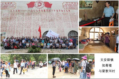 徐安龙校长、翟双庆副校长与第一期全体学员在知青墙前合影